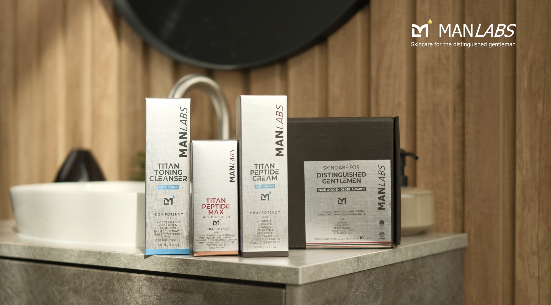 Man Labs Titan 2025 Golden Skincare Kit: The choice of actors at the 2025 Golden Globes. Packed with peptides, antioxidants, and vitamins to visibly firm, hydrate, and revitalize skin. Achieve a youthful, nourished look while reducing the appearance of wrinkles and fine lines. Save 20% with this exclusive kit.