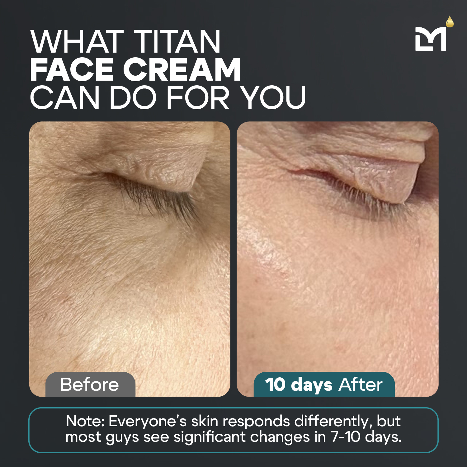 Man Labs Titan Cream is a high-potency anti-aging moisturizer for men. With 15 premium ingredients, including 10 herbal extracts, vitamin E, squalane, and ceramides, it hydrates, rejuvenates, and regenerates skin. Gentle yet effective, it’s optimized for a gentleman’s skin to restore firmness and radiance.