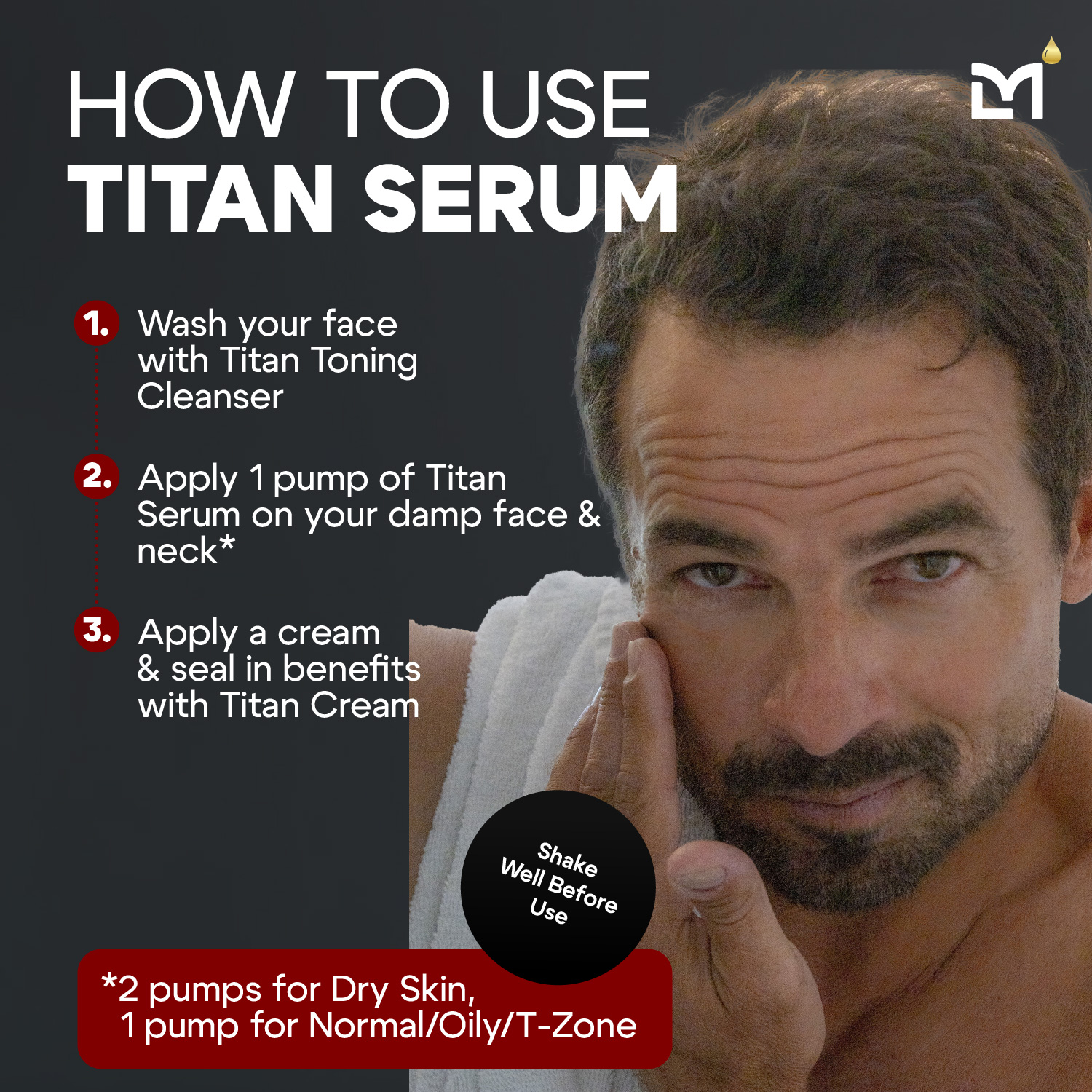 Man Labs Titan Anti-Aging Serum is a high-potency formula designed for men. With 10 premium ingredients like niacinamide, hyaluronic acid, and peptides, it visibly reduces signs of aging and environmental stress in just 7 days. Boost skin firmness, elasticity, and radiance for a youthful look.